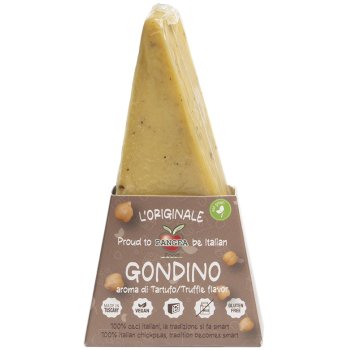 Descubre Gondino, la alternativa vegana al queso que revoluciona tu paladar. Elaborado en el corazón de la Toscana con garbanzos italianos cultivados de forma sostenible, este queso vegano ofrece una textura y sabor que rivaliza con el queso tradicional. Lo especial: su toque de trufa que añade un carácter audaz y sofisticado a cada bocado. Hecho con ingredientes 100% naturales y ecológicos, sin anacardos ni artificiales. Una opción consciente que protege el planeta sin comprometer el placer gastronómico.