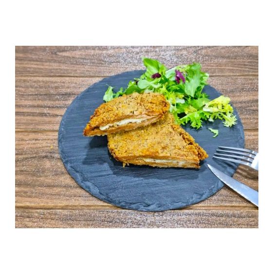 Si pensabas que la alta cocina vegana tenía límites, este Cachopo Vegano de Camembert & Jamón Ahumado viene a romperlos. Una combinación de contrastes perfectos que conquista desde el primer bocado — y que no dejará indiferente a nadie, vegano o no.