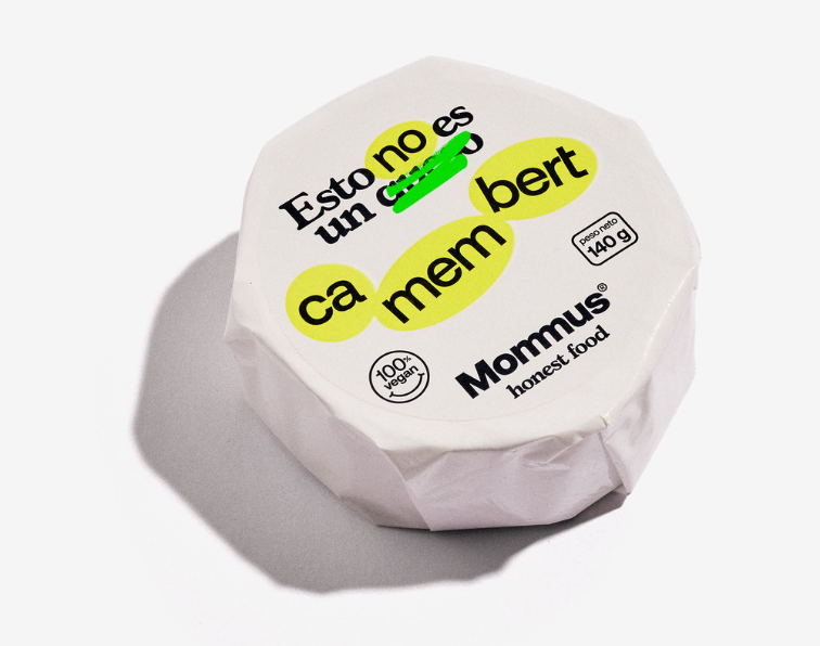 El sustituto vegetal del Camembert de Mommus es un fermentado de anacardo y está elaborado de forma artesanal, cultivado con fermentos naturales y estacionado en cámara. Cubierto con una fina capa de moho visualmente muy parecido al original, su sabor es excepcional. Tiene notas ácidas, y ligeramente amargas y picantes. Es cremoso y fresco. Contiene probióticos.